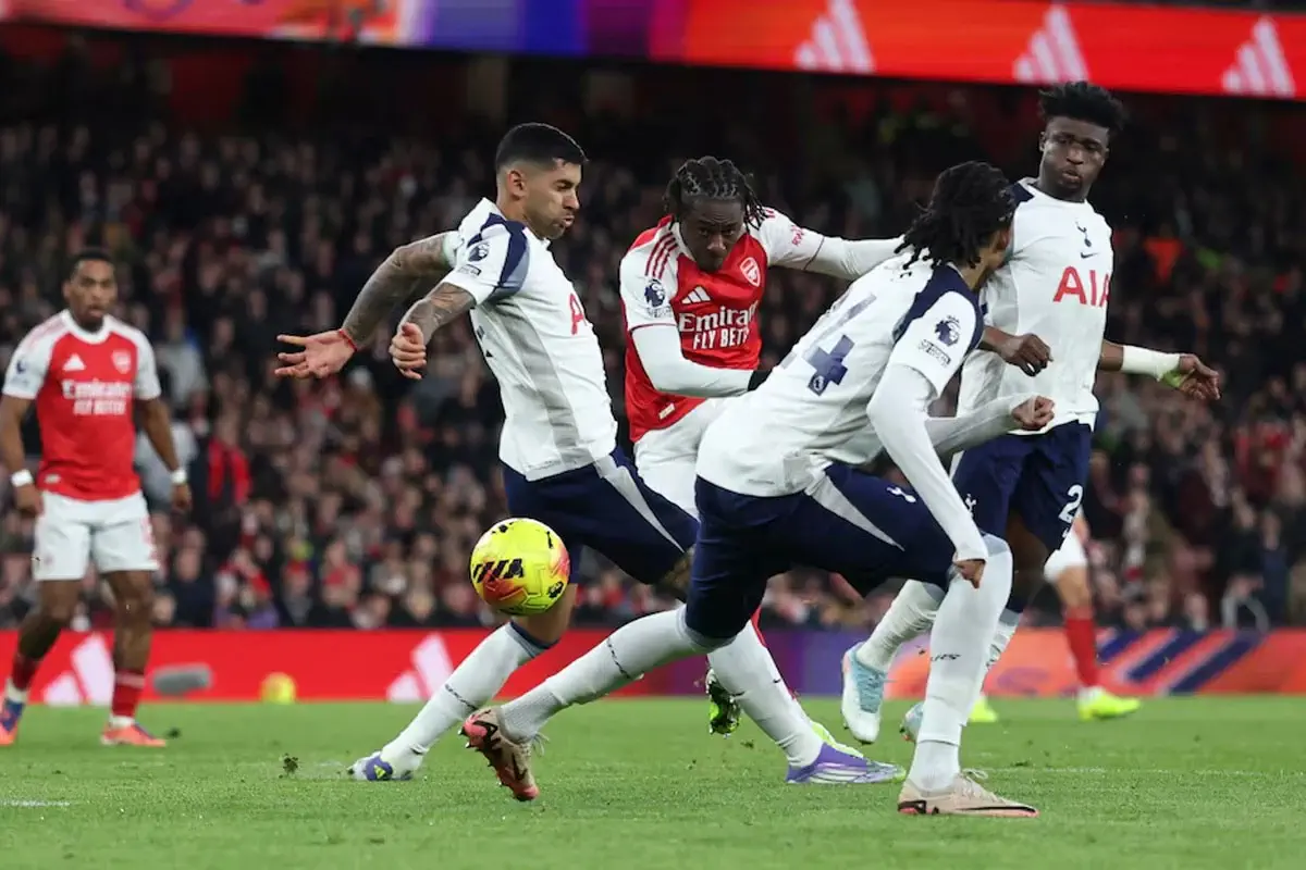 এবেরেচি এজের দুর্দান্ত হ্যাটট্রিকে উত্তর লন্ডন ডার্বিতে টটেনহ্যামকে উড়িয়ে দিল আর্সেনাল। এমিরেটস স্টেডিয়ামে রবিবার প্রিমিয়ার লিগের ম্যাচে ৪-১ গোলে জিতে লিগ টেবিলের শীর্ষে নিজের অবস্থান আরও মজবুত করল মিকেল আর্তেতার দল। দ্বিতীয় স্থানে থাকা চেলসির সঙ্গে ছয় পয়েন্টের ব্যবধান ধরে রাখল তারা।