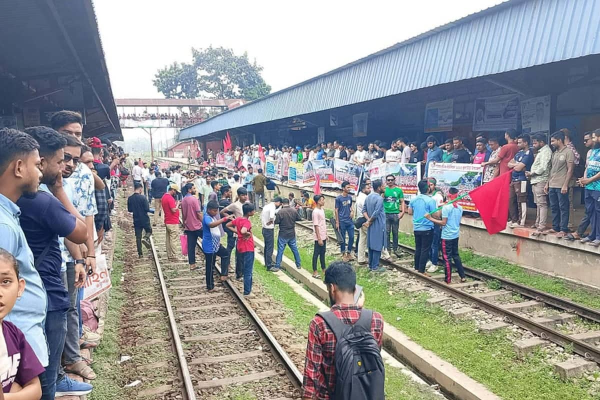 সিলেটে আট দফা দাবিতে রেলপথ অবরোধ